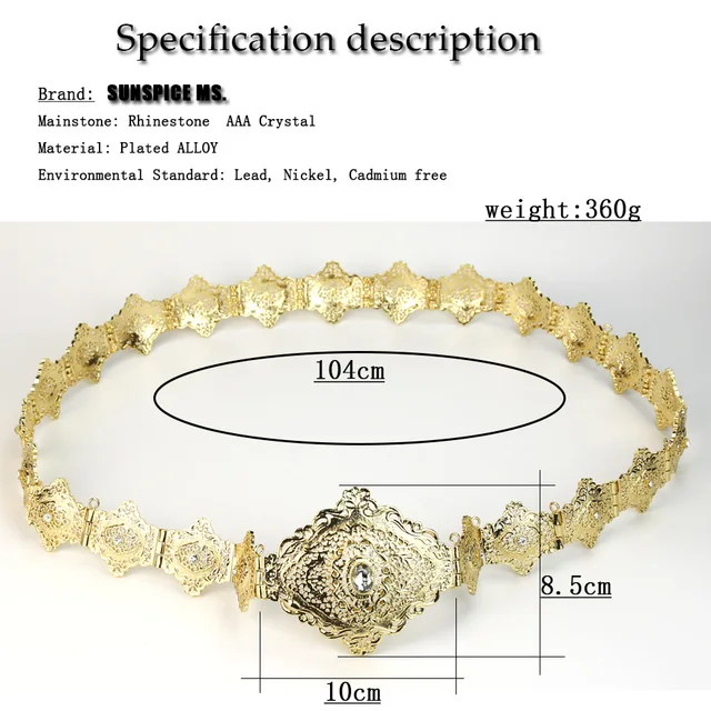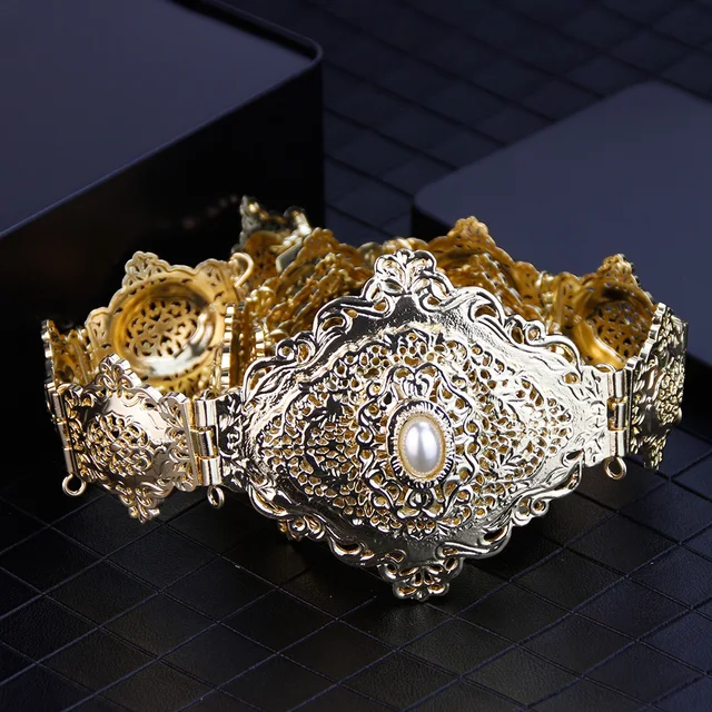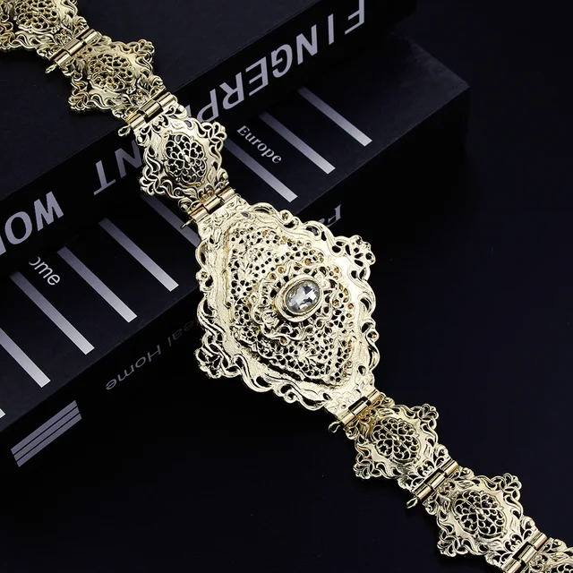 Sunspicems Algeria Morocco Caftan Belt For Women Arab Abaya Waist Chain Belt Hollow Arabesque Ethnic Wedding Body Jewelry Gift
